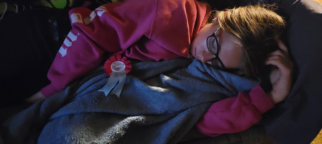 Eleven meant another fair well to a bag of toys she has out grown, parting ways with her once beloved unicorn hoodie with the horn.